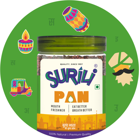 Explore the unique essence of pan mukhwas from Surili, meticulously crafted to capture the authentic flavor of pan leaves. Enjoy a burst of freshness and cultural richness in every bite.